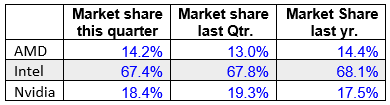 سهم سازندگان پردازنده های گرافیکی از بازار