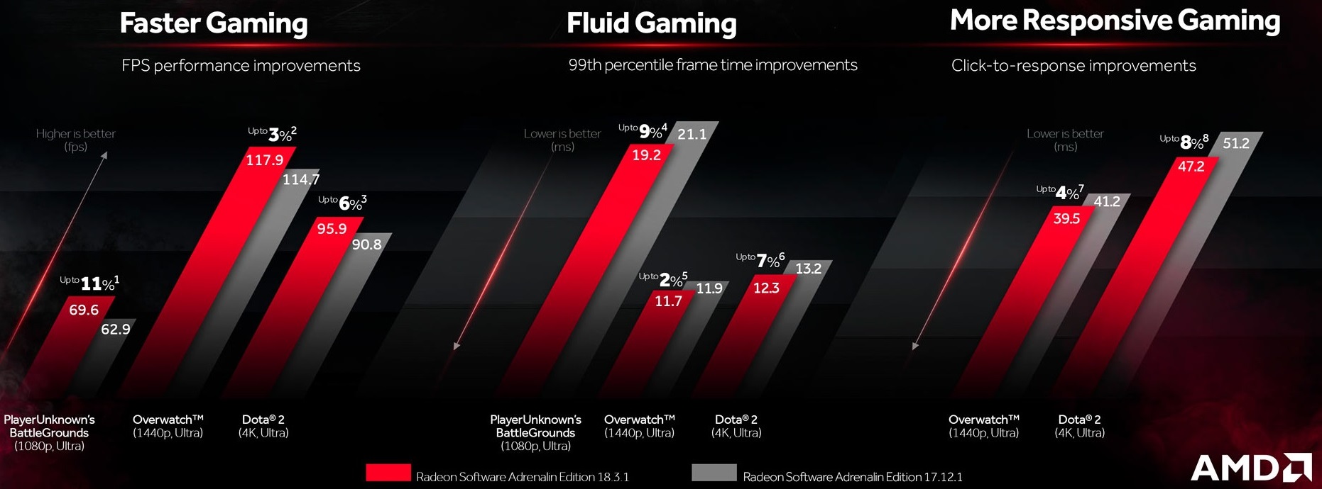 همچنین چارت موجود در این اسلاید بهبود عملکرد نسبت به درایور Radeon Software 17.12.1 را نشان میدهد که به لطف ReSX ممکن شده است. ظاهراً طی هفتههای پیش رو شاهد گسترش بهینهسازی های پروژه ReSX به عناوین بیشتری خواهیم بود. نگارش آزمایشی اخیر با افزایش 11 درصدی نرخ فریم دهی و بهبود حداکثر 9 درصدی مدت فریم دهی (Frame time) همراه است. AMD برای این تستها از کارت گرافیک Radeon RX 580 است.