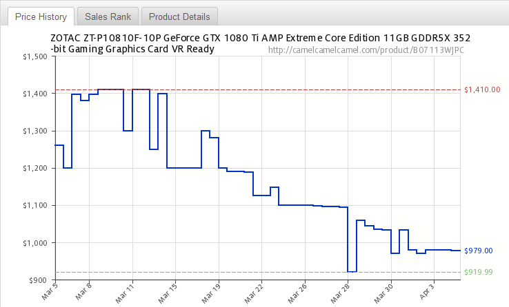 در طول ماه مارس میلادی (ماه گذشته) قیمت کارتهای رده بالای بازار همچون NVIDIA GTX 1080 Ti و AMD RX Vega 64 شاهد کاهش حدود یک سوم بودهاند.