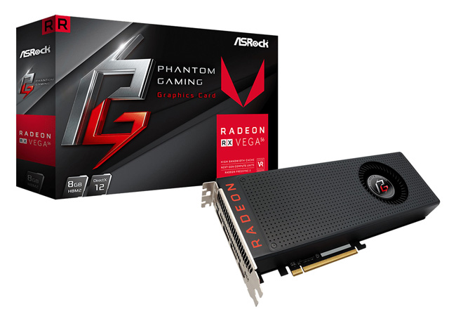 ASRock، تولید کنندهي قطعات کامپیوتر، از اولین نمونه کارتهای سری Radeon RX Vega خود تحت برند خانواده Phantom Gaming رونمایی کرد. این کارتها از همان طراحی مرجع AMD استفاده کردهاند و در این زمینه حرف زیادی برای گفتن ندارند. نمونهی ASRock RX Vega 56 Phantom Gaming X از سرعت کلاک 1156-1471 MHz در هسته گرافیکی و همچنین سرعت 800 MHz در حافظه خود برخوردار است.