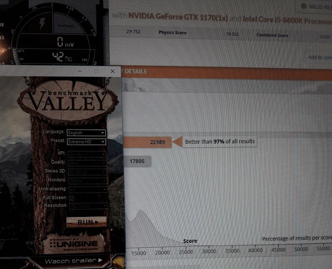 اما تصویر دیگری نیز منتشر شده که کسب امتیاز 29,752 در بنچمارک FireStrike را نشان میدهد. هرچند این عکس از مانیتور گرفته شده است، اما در حقیقت میتواند یک عکس از اسکرین شات ساختگی باشد. در هر صورت امتیاز یاد شده بیشتر از امتیاز قابل کسب توسط کارت گرافیک GTX 1080 Ti است.