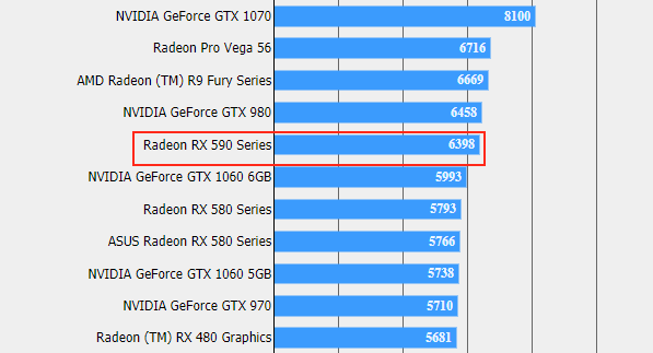 هرچند هنوز جزئیاتی از RX 590 در دست نیست، اما انتظار میرود مهاجرت از فناوری ساخت 14 نانومتری به 12 نانومتری این امکان را به AMD بدهد تا فرکانسها را افزایش دهد و راندمان بهتری هم داشته باشد. RX 590 مبتنی بر ریزمعماری فعلی Polaris است اما با بهکارگیری فناوری ساخت جدیدتر 12 نانومتری تولید میشود. اخیراً یک رکورد منتسب به RX 590 در پایگاه داده 3D Mark Time Spy رویت شده که خبر از کارایی نزدیک به RX 580 اورکلاک شده میدهد.