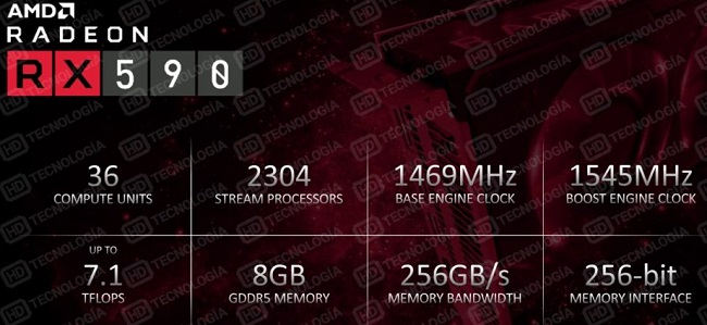 بر پایه اطلاعات به دست آمده از طریق یک اسلاید رسمی لو رفته از AMD، کارت گرافیک AMD Radeon RX 590 به پردازنده گرافیکی 12 نانومتری Polaris 30 با 2304 پردازنده جریانی یا همان سایه زن مجهز است. فرکانس پایه هسته این کارت 1469 مگاهرتز و فرکانس بوست آن به 1545 مگاهرتز میرسد. با این حال میدانیم فرکانس مدلهای کاستوم به 1600 مگاهرتز هم میرسد. طبق این اسلاید AMD توانسته به لطف فناوری ساخت 12 نانومتری 15 درصد فرکانسها را نسبت به RX 580 افزایش دهد. همچنین گفته میشود AMD در یک یا چند اسلاید منتشر نشده بر روی 12 درصد افزایش کارایی دست گذاشته است.