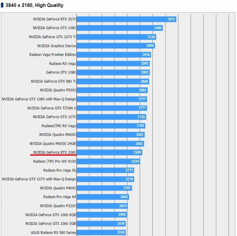 از آنجایی که مبدا رکورد به ثبت رسیده مشخص نیست، ممکن است اطلاعات آن گمراه کننده باشند، در هر صورت به نظر میرسد RTX 2060 قدری ضعف تر از Radeon RX Vega 56 و GeForce GTX 1070 عمل میکند اما هنوز سریعتر از GTX 1060 است.