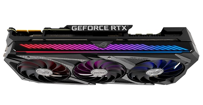 پرچمدار و بالاترین سری از کارتهای گرافیک آمپر که توسط ایسوس به تولید میرسند، در سری ROG Strix GeForce RTX 30 خواهند بود. این خانواده تا 3 اسلات را در مادربرد به اشغال خود درآورده و از فنهایی با فناوری Axial استفاده میکند. خنک کننده بزرگ این کارت گرافیک با سه عدد فن 11 و 13 پره، هدایت گرما را بر عهده دارد.