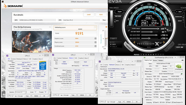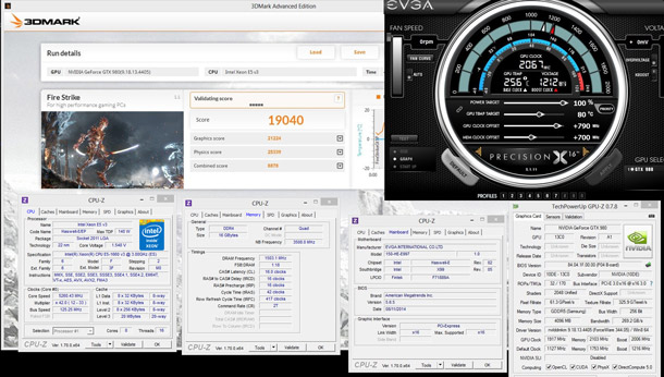این فرآیند هیجان انگیز که برروی سیستمی پرتوان متشکل از قطعات اختصاصی کمپانی EVGA نظیر مادربوردی از سری X99، پاوری با توان بالای 1600 وات با عنوان SuperNova و کارت گرافیکی GeForce GTX 980 صورت گرفته است، نهایتا منجر به کسب امتیاز فوق العاده و بالای 19040 در بنچمارک 3D mark Fire Strike شده است.