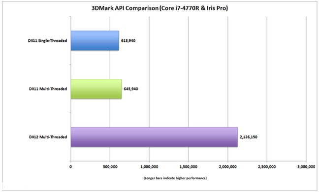 اگرچه استفاده از پردازندهی گرافیکی اینتل امر چندان معمولی برای بازیخورها نیست، اما به هر صورت اعلام نتایج ارتقای API این پردازندهها به DirectX 12 خالی از لطف نیست. DirectX 12 روی گرافیک Iris Pro 5200 اینتل هم برتری محسوسی نسبت به DirectX 11 دارد. هرچند این برتری چهاربرابری هم نسبت به افزایش کارایی در پردازندههای گرافیکی اختصاصی AMD و NVidia چندان به چشم نمیآید!