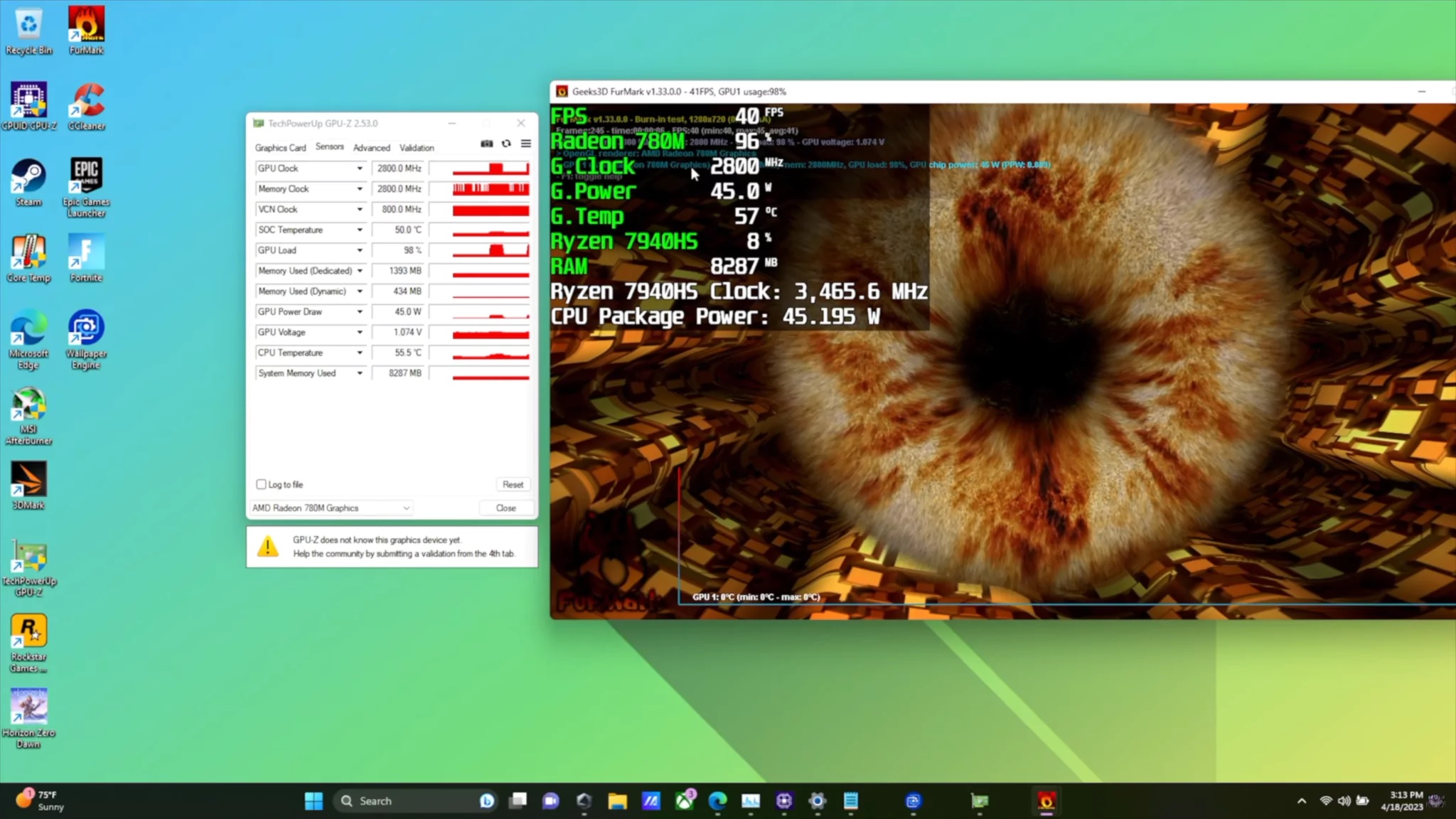 از قبل و به لطف دادههای منتشر شده توسط کاربران حرفهای دیگر، بسیاری از نتایج بنچمارک گرافیک 780M مشخص شده بود ولی در این مطلب قصد داریم روی بخش دیگری از تواناییهای این iGPU تمرکز کنیم. در حال حاضر میدانیم که امتیاز بنچمارک 3DMark Time Spy برای CPU مورد استفاده در Ryzen 9 7940HS به 11،453 رسیده و برای GPU نیز امتیاز 2830 (بدون اورکلاکینگ و محدود کردن توان مصرفی APU تا 45 وات) ثبت شده است.