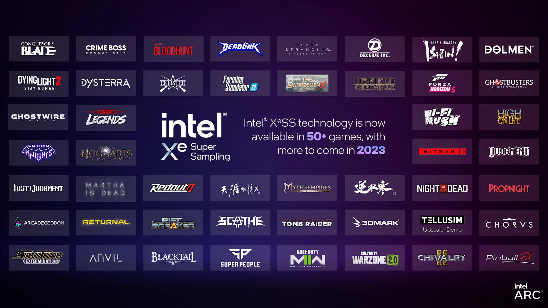 اینتل همراه با پردازندههای نسل سیزده و کارت گرافیک Arc A770، فناوری ارتقای ابعاد یا آپ اسکلینگ XeSS را معرفی کرد. این فناوری که هم از کارتهای گرافیک سری Arc اینتل و هم از محصولات انویدیا و AMD پشتیبانی میکند، اکنون در ۵۰ بازی مختلف قابل دسترس است.