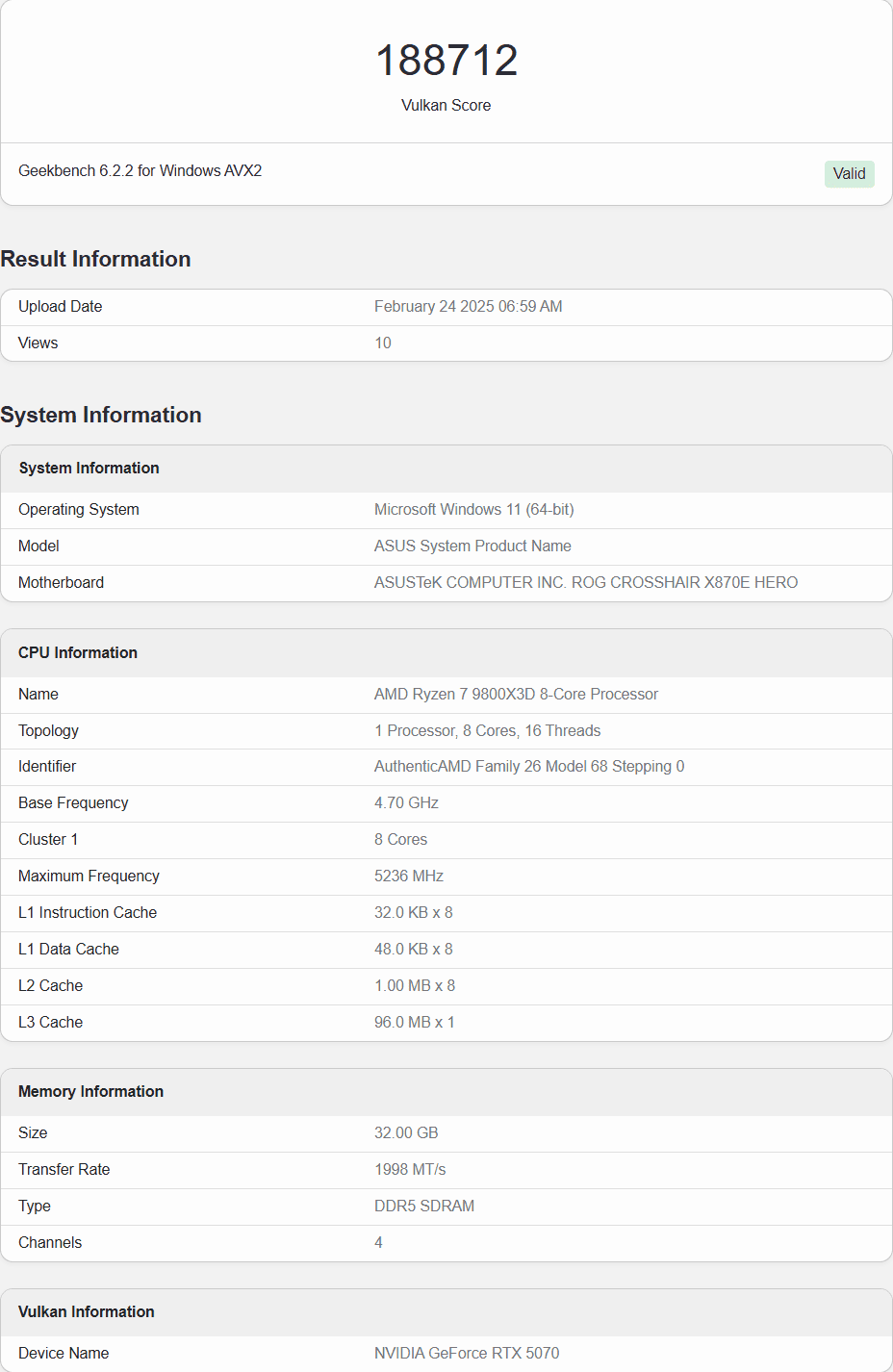- امتیاز در Vulkan : 188712