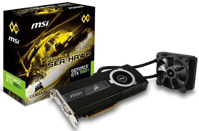 کمپانی MSI، پرآوازه در تولید سخت افزارهای گیمینگ و کمپانی Corsair پیشرو و مبتکر در خنک سازی سخت افزارهای کامپیوتر، دست آورد همکاری میان خود را معرفی کردند. همکاری این دو نام بزرگ در حوزه سخت افزار به تولد کارت گرافیک GeForce GTX ۹۸۰ Ti SEA HAWK انجامیده است. جدیدترین عضو از سری کارتهای گرافیک افسانهای MSI Hawk کارایی خیره کنندهای را در عین خنک ماندن و تولید نویز بسیار کمی ارائه میکند.