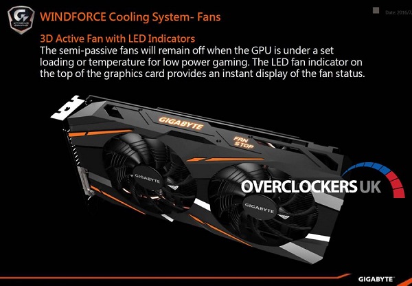 Radeon RX 480 G1 GAMING به راهکار خنک سازی نام آشنای WindForce 2X با طراحی جدید که برای اولین با کارت های سری GeForce GTX 1000 انویدیا رونمایی شد، مجهز است. با این حال کولر مورد استفاده در این کارت در مقایسه دیگر کارت های جدید گیگابایت، برای نمونه 1070 GTX G1 Gaming، کوچکتر و جمع و جور تر است.