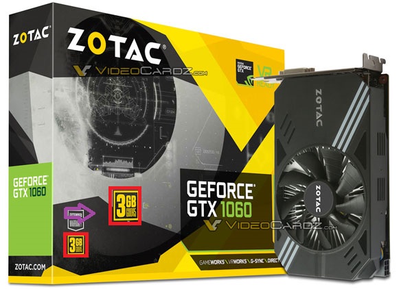 با اینکه تاکنون به طور رسمی نسخه 3 گیگابایتی کارت گرافیک GeForce GTX 1060 تایید نشده، اما وب سایت مشهور videocardz وجود نسخه 3 گیگابایتی را تایید کرده است. ظاهراً این وب سایت و همکاران آن، به نسخه 3 گیگابایتی GTX 1060 پیش از معرفی رسمی دسترسی دارند. هم زمان تصویری از بسته بندی یک کارت گرافیک از ZOTAC منتشر شده که وجود نسخه 3 گیگابایتی GTX 1060 را تایید میکند.