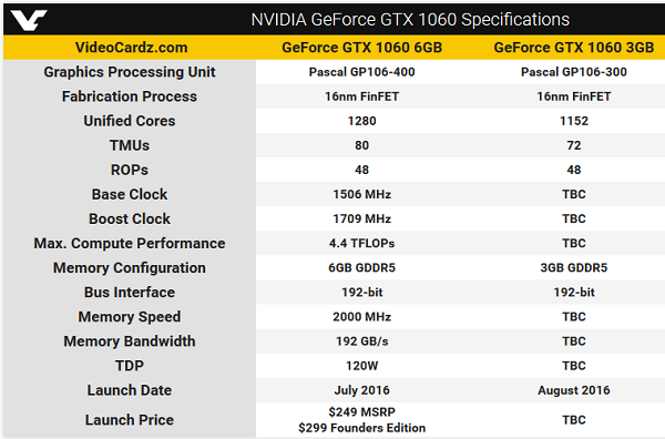 هرچند هنوز هم احتمال عرضه این پردازنده گرافیکی ضعیف تر در قالب کارت گرافیک GeForce GTX 1050 وجود دارد، اما ممکن است انویدیا راه متفاوتی را پیش گرفته باشد و مدل 3 و 6 گیگابایتی GTX 1060 علاوه بر حجم حافظه ویدئویی، در تعداد هسته های CUDA نیز تفاوت داشته باشند. در چنین حالتی کاهش تعداد واحدهای TMU نیز حتمی خواهد بود.