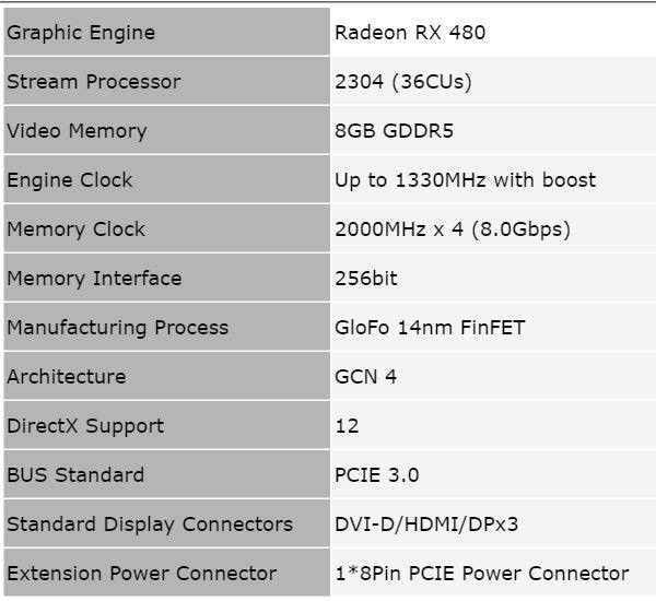 دو لوله 6 میلی متری به کار گرفته شده برای هدایت گرما توسط فلز نیکل پوشانده شدهاند و انرژی موردنیاز کارت نیز از طریق یک پورت 8 پین تامین میشود. کمپانی سازنده برای اتصال برد PCB به سیستم خنک کننده از روشی جدید بهره گرفته است تا ارتباط میان این دو بخش به خوبی صورت بگیرد. بخش Backplate و سیستم خنک کننده تمام مسی علاوه بر کنترل فشار وارده به هسته گرافیکی، به سلامت کارت در هنگام سقوط از ارتفاع نیز کمک زیادی میکنند. دیگر ویژگیها و خصوصیات کارت گرافیک PowerColor Red Devil RX 480 را میتوانید در جدول زیر مشاهده کنید.