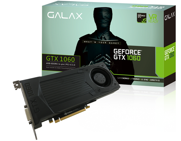 مدل مرجع Galax به سادگی Galax GeForce GTX 1060 نامیده می شود و از راهکار خنک سازی از نوع دمنده بهره می برد. با این حال در مقایسه با طراحی مرجع انویدیا محفظه کولر متفاوت است. فرکانس های این کارت همان مقدار مدل مرجع است.
