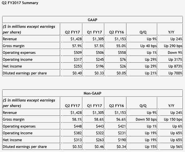 کارت های گرافیک جدید انویدیا مبتنی بر معماری Pascal و در راس آنها GeForce GTX 1080 و GTX 1070، یک فصل مالی خیره کننده دیگر در کارنامه انویدیا بر جای گذاشتند. گزارش مالی اخیر انویدیا حاکی از فروش فراتر از انتظار کارت های گرافیک سری GeForce GTX 10 است. در حالی که تحلیل گران وال استریت ژورنال برای این فصل مالی انویدیا گردش مالی 1.35 میلیارد دلار را پیش بینی کرده بودند، گردش مالی 1.43 میلیارد دلاری همه آنها را غافل گیر کرد.