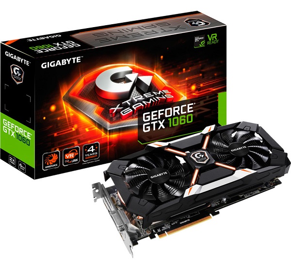 گیگابایت پرچمدار کارت های GeForce GTX 1060 خود را معرفی کرد. GTX 1060 Xtreme Gaming بر پایه گونه 6 گیگابایتی GTX 1060 با برخورداری از 1280 هسته CUDA است. این کارت به پردازنده گرافیکی از پیش اورکلاک شده با فرکانس پایه 1645 مگاهرتز و فرکانس بوست 1873 مگاهرتز و حافظه اورکلاک شده با فرکانس موثر 8316 مگاهرتز مجهز است. به وضوح این کارت تا خرخره اورکلاک شده با مدار تغذیه و کولر قدرتمند است.