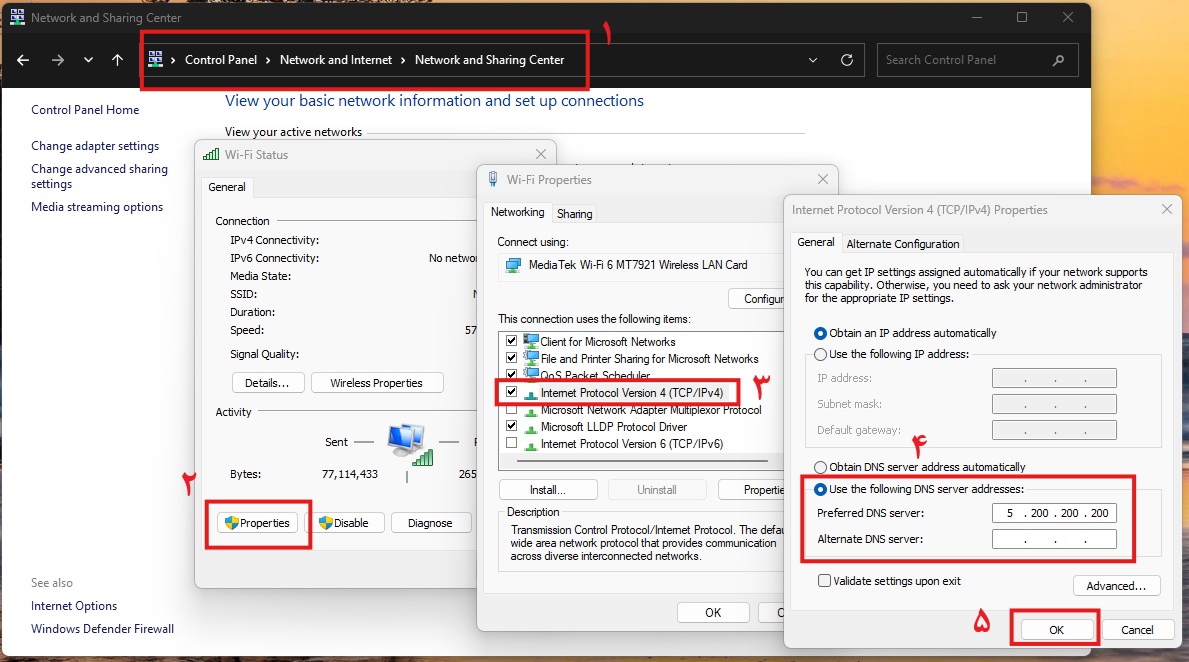 برای تغییر DNS در ویندوز مراحل زیر را انجام دهید: