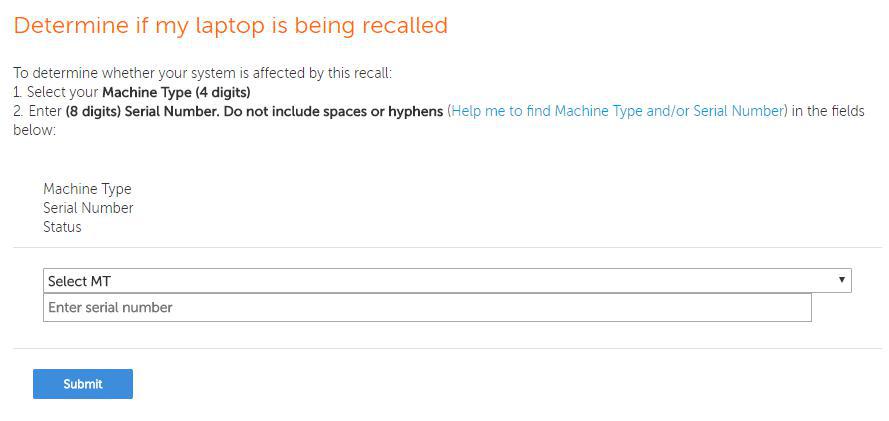 لنوو اعلام کرده است که لپتاپ های مورد نظر در تاریخی بین دسامبر 2016 تا اکتبر 2017 تولید شده اند. این شرکت لیست تمامی مدلهای تحت تاثیر را اعلام کرده است. مدلهای اعلام شده توسط لنوو 20HQ، 20HR، 20K3، 20K4 هستند. مشتریان میتوانند به سایت لنوو (لینک) مراجعه کرده و در آنجا با وارد کردن مدل و سریال لپ تاپ خود متوجه شوند که آیا دستگاه آنها نیز شامل این فراخوان هست یا خیر. همچنین این شرکت در یک صفحهی دیگر اطلاعاتی در مورد چگونگی دریافت خدمات به همراه شماره تماس را ارائه کرده است.