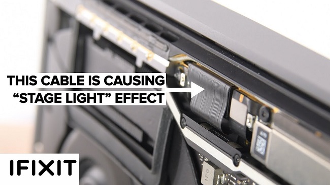 دستگاههایی که با این مشکل مواجه شدهاند، قسمت نور پردازی قسمت پایینی صفحه نمایش آنها با اختلال مواجه شده و شبیه به نورپردازی صحنه نمایش کنسرتهای میشود؛ و در نهایت این مشکل گسترش پیدا کرده و عملکرد کل صفحه نمایش را با اختلال مواجه میکند. به گزارش سایت معروف iFixit که برای اولین بار به وجود این مشکل اشاره کرده بود؛ دلیل به وجود آمدن این مشکل در مکبوکهای ساخته شده از سال 2016 به بعد، استفاده از کابل فلت بسیار نازک و شکننده برای صفحه نمایش این محصولات است که در طول زمان با باز و بسته کردن زیاد صفحه نمایش، این کابل فلت آسیب میبیند.