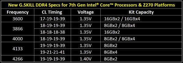 G.SKILL، از سازندگان پیشگام ماژول های حافظه حرفه ای و تجهیزات گیمینگ، سری جدیدی از کیت های حافظه DDR4 خود را معرفی کرد که به طور اختصاصی برای مادربردهای مبتنی بر چیپ ست Z270 و نسل هفتم پردازنده های Core طراحی شده اند. فرکانس پرسرعت ترین کیت های جدید سری Trident Z به 4266 مگاهرتز می رسد.