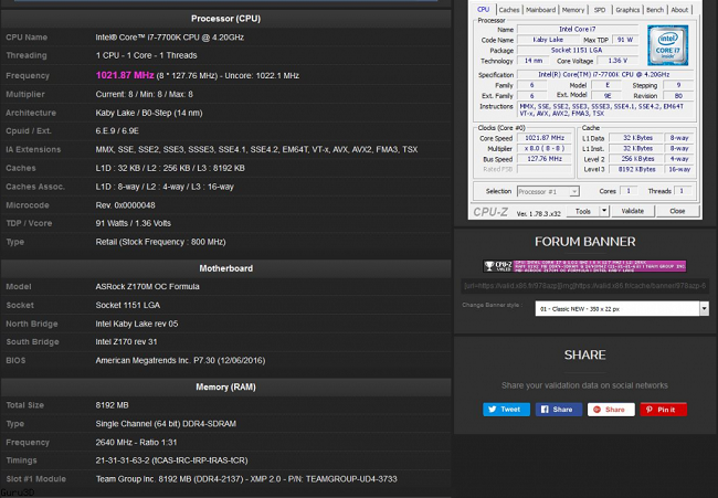 اورکلاکر مزبور با استفاده از یک ماژول 8 گیگابایتی 3733 مگاهرتزی از سری TForce محصول Teamgroup موفق به دست یابی به فرکانس 5280 مگاهرتز شده است. ماژول بکار رفته در کنار پردازنده هر دو توسط نیتروژن مایع خنک سازی شده اند. Audigy پردازنده Core i7 7700K اینتل را در حالت تنها یک هسته پردازشی فعال آن هم با کاهش فرکانس هسته به 1022 مگاهرتز بکار گرفته است. فرکانس حافظه 5280 مگاهرتز با تایمینگ 21-21-31-63-2-CR2 کسب شده است.