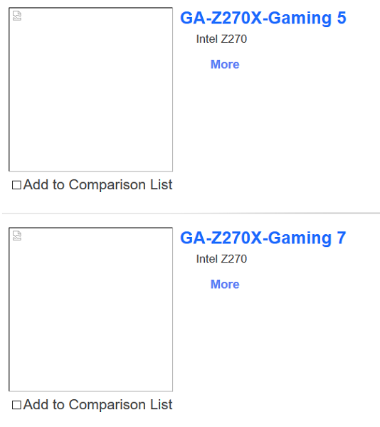 در وب سایت رسمی گیگابایت دو مادربرد مبتنی بر چیپ ست پرچمدار این سری متشکل از GA-Z270X-Gaming 5 و GA-Z270X-Gaming 7 یافت می شود.