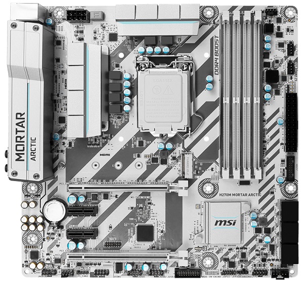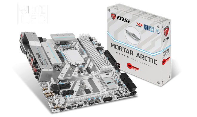 همانطور که از نام آن بر می آید، H270M Mortar Arctic Edition به رنگ سفید و دارای طراحی مشابه لباس های نظامی قطبی است که ظاهری جذاب به آن بخشیده. این مادربرد با بهره مندی از چیپ ست H270 اینتل قابلیت های خوبی نیز ارائه می کند.