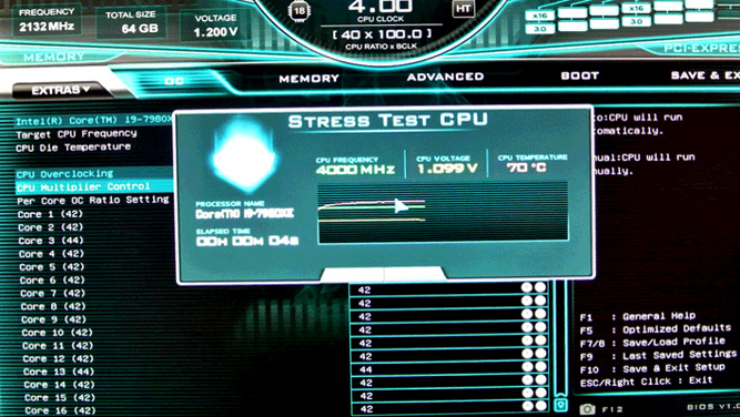 نکتهی جالب مسئله در این است که تمامی این کارها در محیط بایوس صورت میگیرد و میتوان فهمید که آیا اورکلاک انجام شده پایدار است یا خیر. این مسئله میتواند زمان مورد نیاز بوت شدن ویندوز و یا حتی کرش کردنها و راهاندازیها دوباره سیستم را به کلی حذف کند که مسئلهی بسیار حائز اهمیتی است. با این حال انتظار میرود که این قابلیت صرفاً در بالاردهترین ماردبردها تعبیه شود. تست گفته شده از لحاظ فشار بارگذاری به تست معروف Prime95 شباهت دارد و در مدت زمان انجام آن میتوان از طریق محیط بایوس بر مقادیر فرکانس، ولتاژ و همچنین دمای پردازنده نظارت داشت.