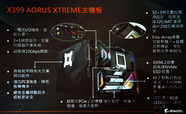بر پایه جدیدترین اسلایدهای لو رفته، گیگابایت یک مادربرد جدید به نام X399 Aorus Extreme عرضه میکند که اولین مادربرد با پشتیبانی از پردازندههای 32 هستهای Ryzen Threadripper خواهد بود.