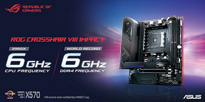 کمپانی ایسوس به تازگی در صفحه فیسبوک خود، از یک نقطه عطف بزرگ در مادربرد ROG Crosshair VIII Impact سخن میگوید. در تصویر تبلیغاتی این مادربرد، اشاره به دو فرکانس 6 گیگاهرتز را مشاهده خواهید کرد؛ یکی از آنها مربوط به رکورد حافظههای DDR4 و دیگری نیز مربوط به اورکلاک پردازندههای AM4 و ثبت فرکانس 6.0 گیگاهرتز است.