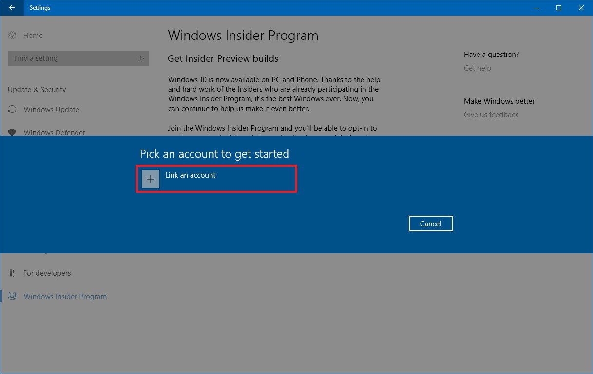 در این بخش از شما درخواست میشود که اکانت مایکروسافت خود را انتخاب کنید، پس از آن برای رجیستر اکانت برای برنامه Windows insider باید توافقی را در سایت مایکروسافت قبول کنید.