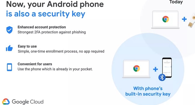 به لطف این قابلیت، اگر بخواهید برای ورود به حسابهای کاربری خود از کلید امنیتی فیزیکی استفاده کنید، دیگر نیازی به خرید دانگلهای امنیتی گران قیمت نخواهید داشت و میتوانید گوشی اندرویدی خود را تبدیل به یک دانگل امنیتی کنید. برای استفاده از این قابلیت، پس از فعال سازی آن کافی است تا به استفاده از ارتباط بلوتوث دستگاه خود را به مرورگر کروم موجود بر روی کامپیوتر خود متصل کنید تا قفل امنیتی موجود بر روی گوشی اندرویدی شناسایی شود؛ البته بعضی از کامپیوترهای خانگی از ارتباط بلوتوث پشتیبانی نمیکنند که این موضوع به سادگی با خرید یک دانگل ارزان قیمت قابل حل است.