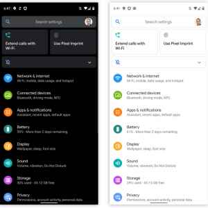 - حالت تاریک: تم و یا حالت تاریک از جمله قابلیتهایی است که پیش از این نیز شرکتهای مختلف به صورت مستقل برای دستگاههای خود عرضه کرده بودند ولی گوگل برای اولین بار این قابلیت را به صورت بومی برای سیستم عامل اندروید تدارک دیده است و کاربران میتوانند از آن استفاده کنند. این حالت به راحتی چشم در حین کار با دستگاه و یا مصرف انرژی کمتر دستگاه کمک شایانی میکند.