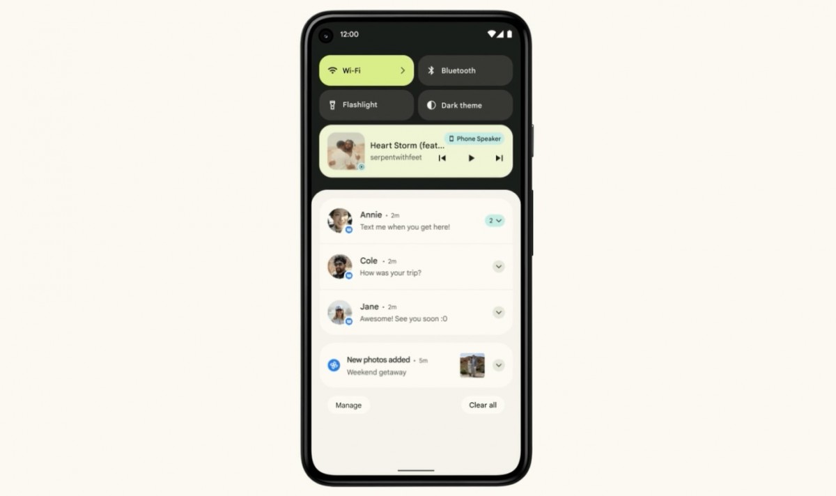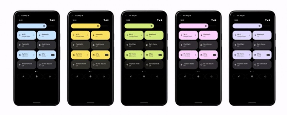 اندازه بسیاری از آیتمهای اندروید 12 از ساعت صفحهقفل گرفته تا منوی تنظیمات سریع نیز بزرگتر شده و در پنل تنظیمات سریع هم چهار آیتم قابل مشاهده بوده که در صورت باز شدن به هشت آیتم میرسد.
