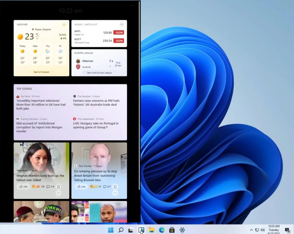 همچنین شاهد افزوده شدن آیکون جدیدی در محیط تسکبار به نام ویجتها هستیم که در این محیط میتوان به ویجتهای مختلفی مانند اخبار و آبوهوا دسترسی داشت. همانطور که انتظار میرفت بخشهای زیادی از ویندوز 10X راهی ویندوز 11 شده است.