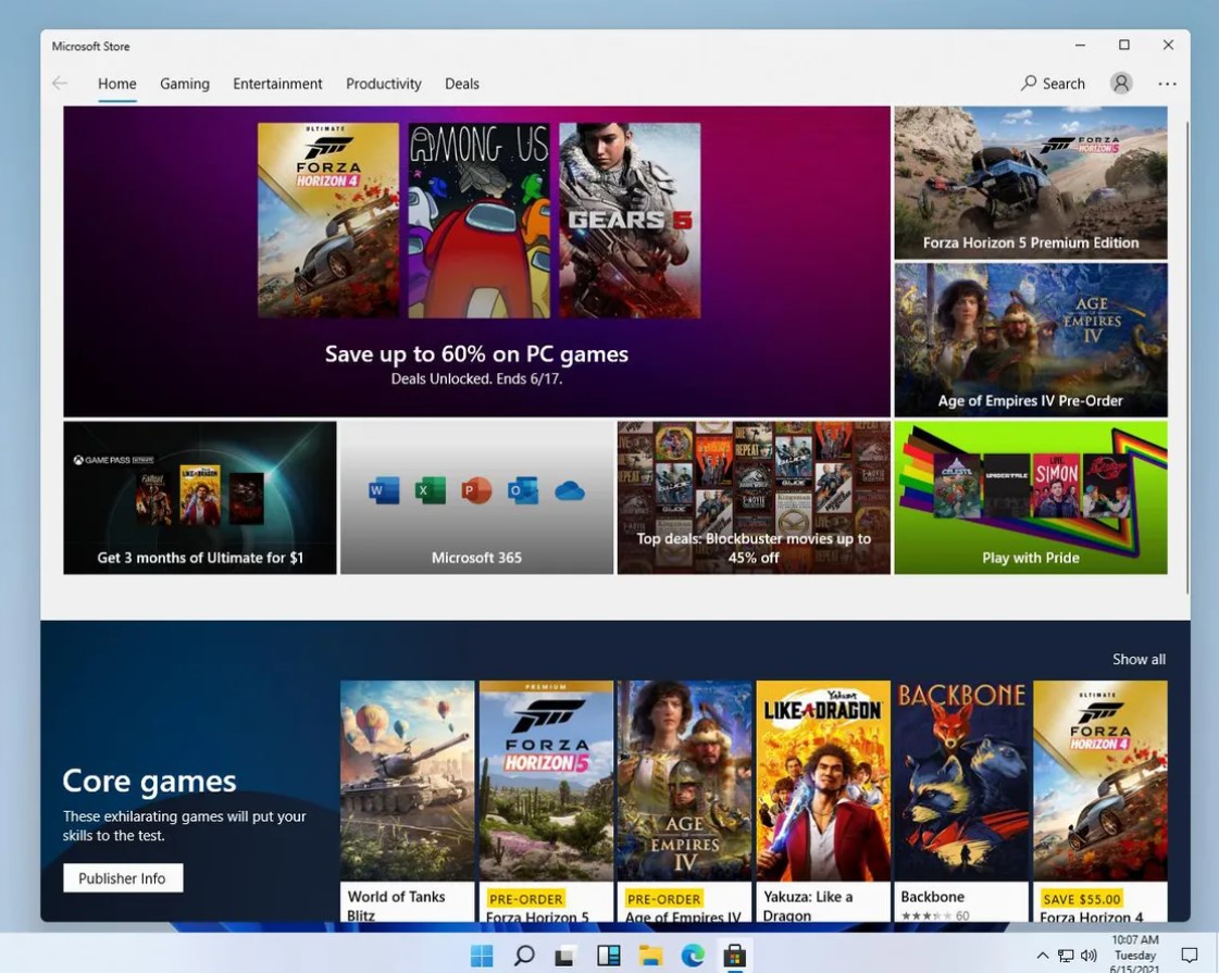متاسفانه برخلاف برخی شایعات ظاهر استور مایکروسافت تغییر چندانی نکرده و البته این احتمال وجود دارد که در نسخه نهایی ویندوز ۱۱ شاهد آپدیت این بخش از ویندوز هم باشیم. طی ماههای گذشته گزارشهای زیادی در مورد استور جدید ویندوز منتشر شده و گفته شد توسعهدهندگان این امکان را پیدا خواهند کرد که انواع و اقسام برنامهها مانند مرورگرها را در این محیط توسعه دهند.