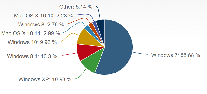 در مورد آمار کلی بازار سیستم عامل های دسکتاپ هم باید بگوییم که به صورت کلی رشد بسیار کندی برای این حوزه شاهد هستیم، به طوری که در بازه زمانی ماه اکتبر تا نوامبر سال 2015 این بازار در حدود 1.06 درصد رشد داشته است. ویندوز 7 هم همچنان با آمار 55.8 درصدی خود محبوبترین سیستم عامل بین کاربران دسکتاپ است و ویندوز های XP، ویستا، 8 و 8.1 هم به ترتیب 10.93، 1.62، 2.76 و 10.3 درصد دیگر نسخه های پرطرفدار سیستم عامل مایکروسافت هستند. البته باید به این موضوع هم اشاره کنیم که همه ی نسخه ها به جز ویندوز 10 با کاهش سهم از بازار روبرو بوده اند و فعلاً تنها نسخه ی دارای رشد از سهم بازار برای مایکروسافت، ویندوز 10 است.
