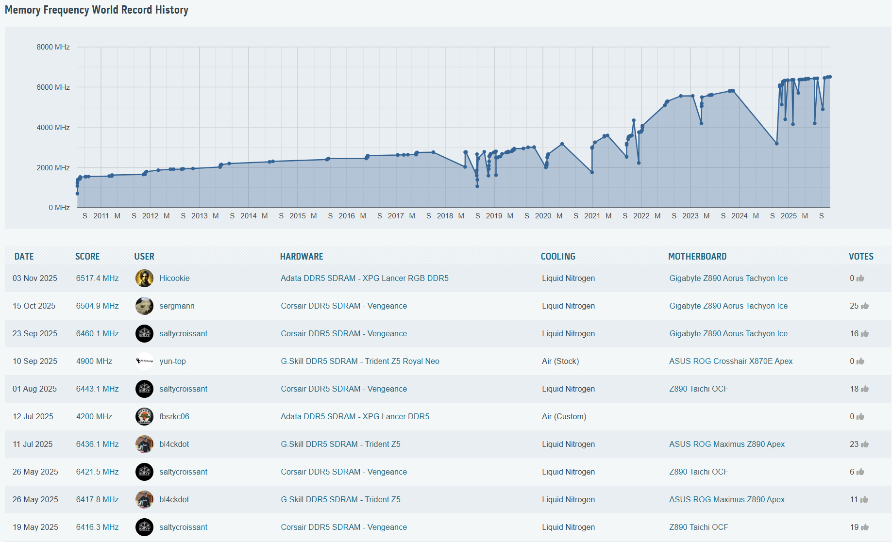 شرکت گیگابایت بار دیگر توانست نام خود را در صدر جدول جهانی اورکلاک حافظه رم ثبت کند. اورکلاکر مشهور این شرکت با نام مستعار Hicookie موفق شد با استفاده از مادربرد Z890 AORUS Tachyon ICE رکورد جهانی جدیدی را در فرکانس حافظه DDR5 به ثبت برساند.