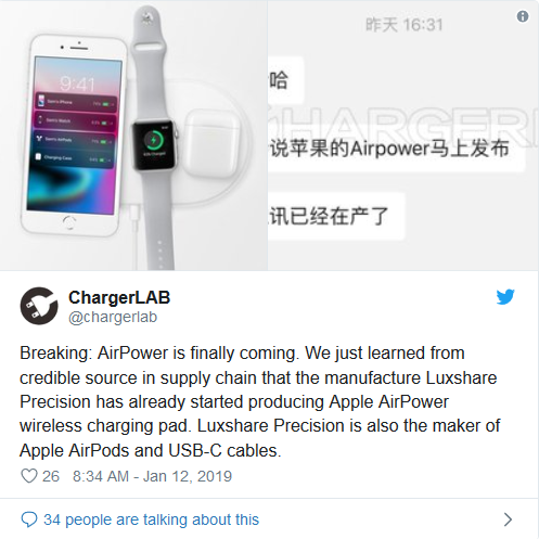 اخیراً حساب توییتری ChargerLAB به نقل از سایت معروف macrumors اعلام کرده است اپل در حال تولید پد شارژ بیسیم AirPower است. این شایعه واکنش کاربران اپل را به همراه داشته و آنها از این خبر ابراز خشنودی کردهاند و انتظار دارند تا در سال جاری بتوانند این محصول را خریداری کنند. اپل برای اولین بار این پد شارژ بیسیم را در سپتامبر سال 2017 هم زمان با آیفون 8 و ایفون X معرفی کرد؛ پد شارژ بیسیم AirPower علاوه بر گوشی اپل میتواند لوازم جانبی این شرکت ایرپاد و ساعت هوشمند اپل واچ را هم شارژ کند. در آن زمان اپل در مورد قیمت این محصول ویژه صحبتی نکرد و فقط اعلام کرد که این پدر شارژ بیسیم در سال 2018 عرضه میشود، اما 2018 به پایان رسید و خبری از این محصول نشد.