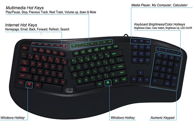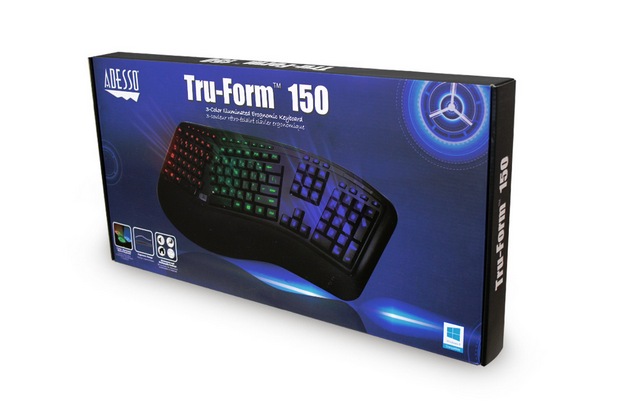 کیبورد جدید Tru-Form 150 از شرکت Adesso محصول جدیدی است که در طراحی آن، ارگونومی دستها و انگشتان به خوبی رعایت شده و طراحی آن به گونه ای است که با گروه بندی کلید ها با انحنای مناسب در سه بخش مجزا، محل قرارگیری طبیعی برای مچ دست و آرنج ها را بطور کامل مد نظر قرار داده است.