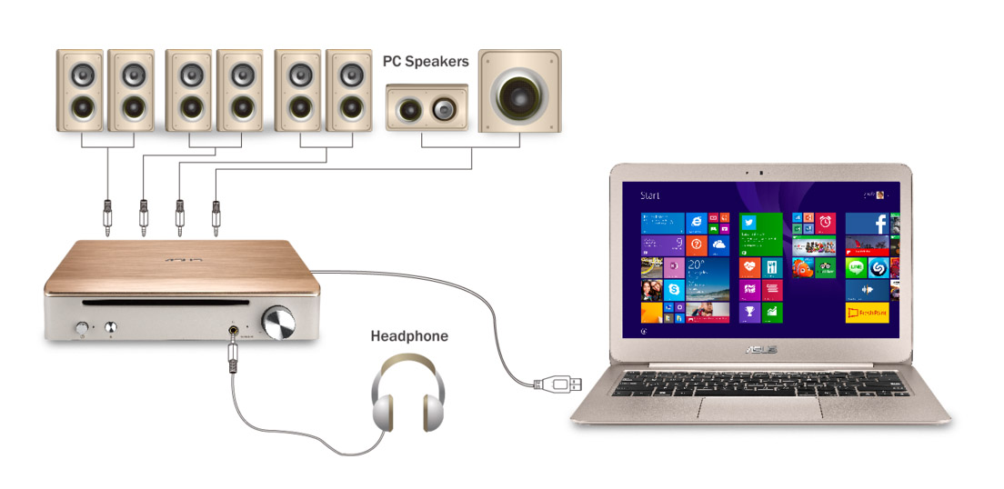 در حالی که لپ تاپ ها از خروجی صدای 2 کاناله بهره می برند، Impresario SBW-S1 PRO به عنوان یک کارت صوتی و بلو-ری رایتر اکسترنال می تواند عملکرد صدا را با استفاده از سخت افزار متناسب خود کامل کند و برای کاربر امکان استفاده از صدای 7.1 کاناله را فراهم می کند. یک پردازنده سیگنال دیجیتال (DSP) به Impresario SBW-S1 PRO، امکان تولید صدای فراگیر مجازی را با هدست ها یا بلندگوهای رایج استریو نیز مهیا می کند.