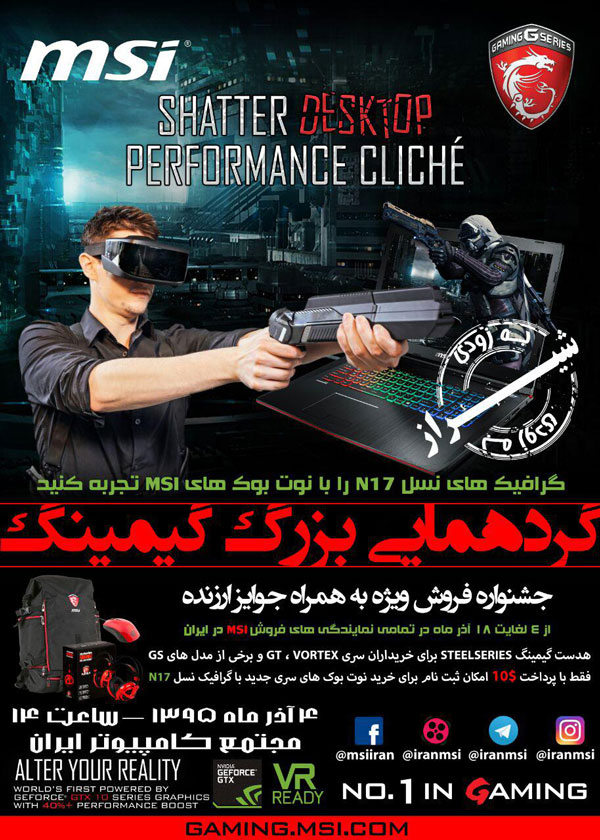 همانطور که میدانید و در اطلاعیه قبلی عنوان شد، بخش لپتاپهای گیمینگ MSI قصد دارد مراسم ویژهای را با محوریت گیمینگ و گیمرها در تهران برگزار کند. در این مراسم که چهارم آذرماه 95 در بازار کامپیوتر ایران برگزار خواهد شد، اتفاقات ویژهای در پیش خواهد بود.