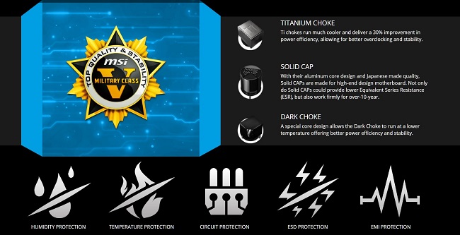 حتی با با وجود اینکه Z370a-Pro در محصولات رده پایین چیپست Z370 به شمار می رود، MSI مدار رگولاتور مناسبی را به خدمت گرفته تا پردازنده قدرتمند i7-8700K حتی در حالت اورکلاک، با مشکل تامین انرژی مواجه نشود. VRM این مادربورد از نوع 9 فاز است که از این تعداد 6 فاز مختص به تامین ولتاژ اصلی پردازنده شامل Vcore ،VCCGT، دو فاز مختص به تامین ولتاژهای VCCIO و VCCSA و یک فاز مسئول تامین جریان مورد نیاز حافظه های RAM سیستم است. لازم به ذکر است که این مادربورد تحت استاندارد نظامی Military Class 5 ساخته شده است.