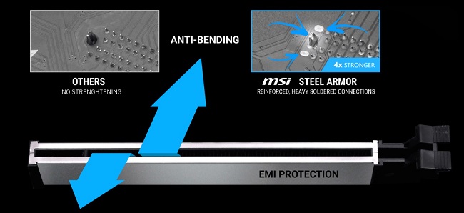 MSI Z370a-Pro همچنین از تکنولوژی NVIDIA SLI و AMD Crossfire در حالت های دو گانه پشتیبانی می کند. بدین ترتیب، می توانید از 2 کارت گرافیک در این مادربورد استفاده کنید و طعم شیرین چینش های چندگانه با افزایش بسیار بالای پردازش گرافیکی را بچشید. از این بین این دو اسلات PCIe Gen 3.0 x16، اسلات اول توسط محافظ فلزي احاطه شده است که هنگام نصب کارتهاي گرافيک سنگين درون کيس، مقاوت آن را به طور چشمگيري افزايش مي دهد.
