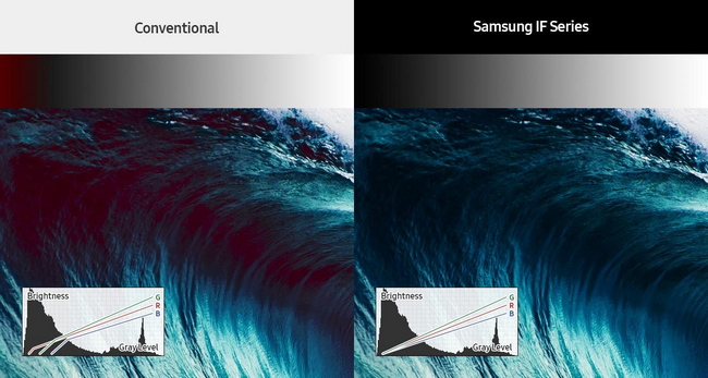 محتوای تبلیغاتی برای اینکه تاثیر زیادی داشته باشد و بتواند در ذهن بینندگان نفوذ کند میبایست با همان شکل و رنگی که طراحی شده به نمایش دربیاید. نمایش دقیق رنگها چالش بزرگی برای برخی از نمایشگرهای حرفهای است. نمایشگر مدل IF020H سامسونگ به کمک کالیبراسیون پیشرفته و امکانات شخصیسازی گسترده، این امکان را به صاحبش میدهد تا به طور دلخواه و در دامنه گستردهای از رنگها محتوای خود را به تصویر بکشد. در طی فرآیند کالیبراسیون این نمایشگر تمامی ساب پیکسلها برای نمایش یکنواخت رنگها و میزان یکسان روشنایی محتوا در تمامی قسمتها تنظیم میشود.