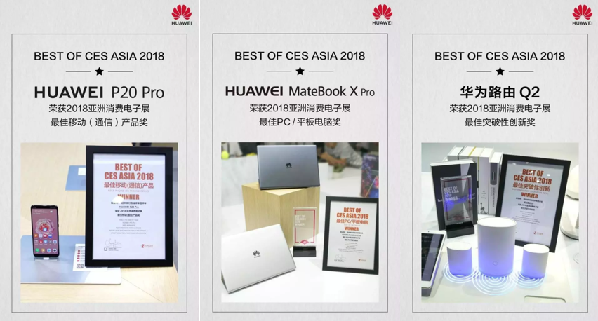 هواوی بهترین عناوین و جایگاههای CES Asia را با نمایش محصولاتی که از شهرتی جهانی برخوردارند، نصیب خود کرد. سه محصول کلیدی و سطح بالای این شرکت یعنی HUAWEI P20 Pro، HUAWEI MateBook X Pro و Huawei Routing Q2 عنوان «بهترین دستگاههای همراه» را به ترتیب در بخش «ارتباطات»، «کامپیوتر شخصی/تبلت» و «نوآوری چشمگیر»، نصیب خود کردند.