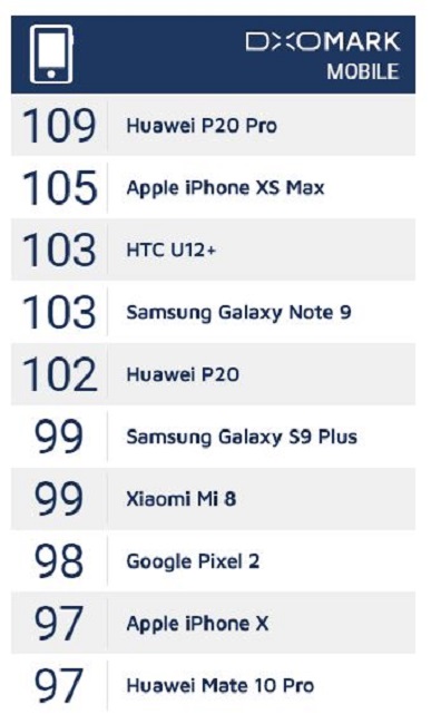 این رده بندی، دوربین گوشی های هوشمند را نیز شامل می شود و از جنبه های مختلف عکاسی و فیلم برداری از لحاظ فنی آنها را مورد بررسی قرار داده و به آنها امتیاز می دهد. در بخش گوشی های هوشمند در این رده بندی، از زمانی که هوآوی گوشی Huawei P20 Pro را 8 ماه قبل به بازار معرفی نمود، این گوشی در صدر این رده بندی جای گرفته و علی رغم معرفی مدل های جدیدتر طی 8 ماه گذشته از سوی رقبای قدرتمندی چون سامسونگ و اپل، هنوز گوشی موفق به کسب امتیاز Huawei P20 Pro در این رده بندی نشده است.