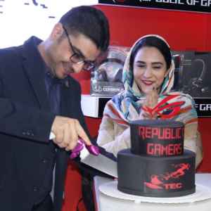 در انتها نیز به صورت نمادین، کیک ویژه ROG و Tec Caf توسط آقای هادی برش خورد تا شیرین آن برای جامعه گیمینگ کشور پایدار باشد.